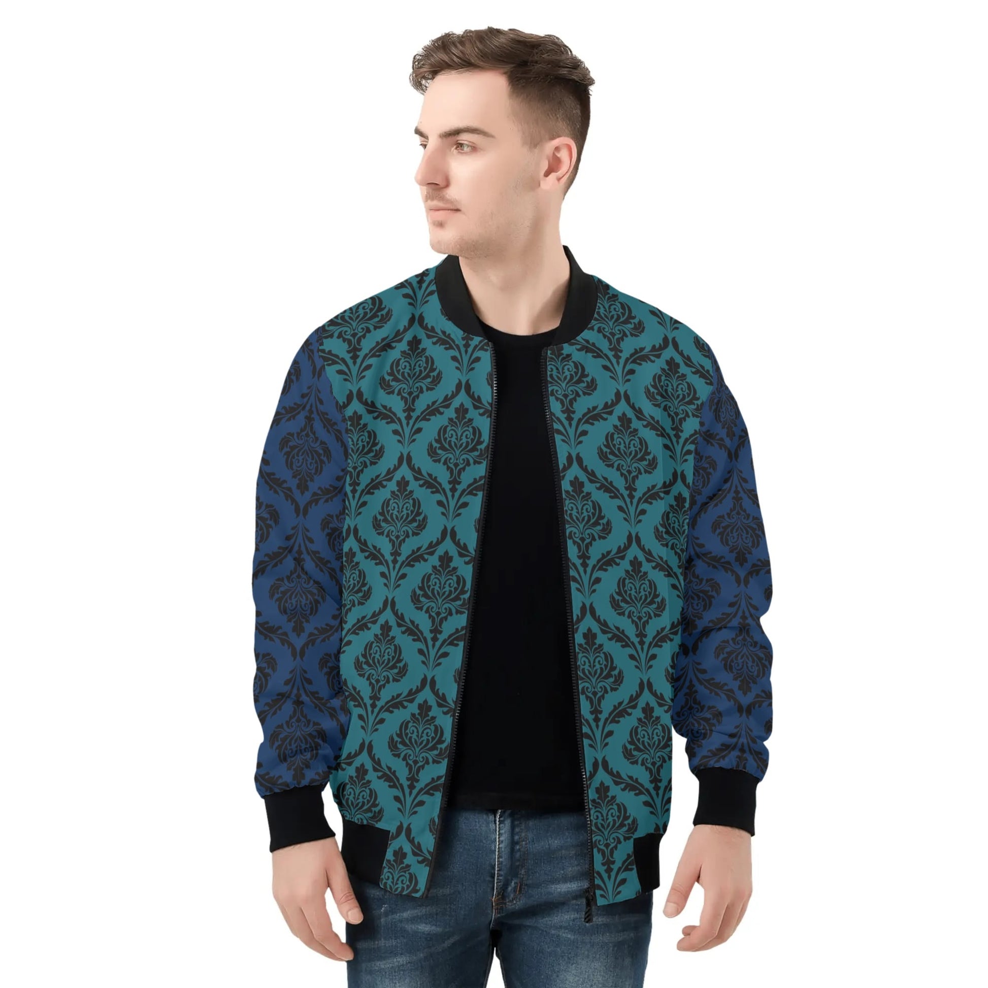 Mens Bomber Jacket-Blue/Teal Damask